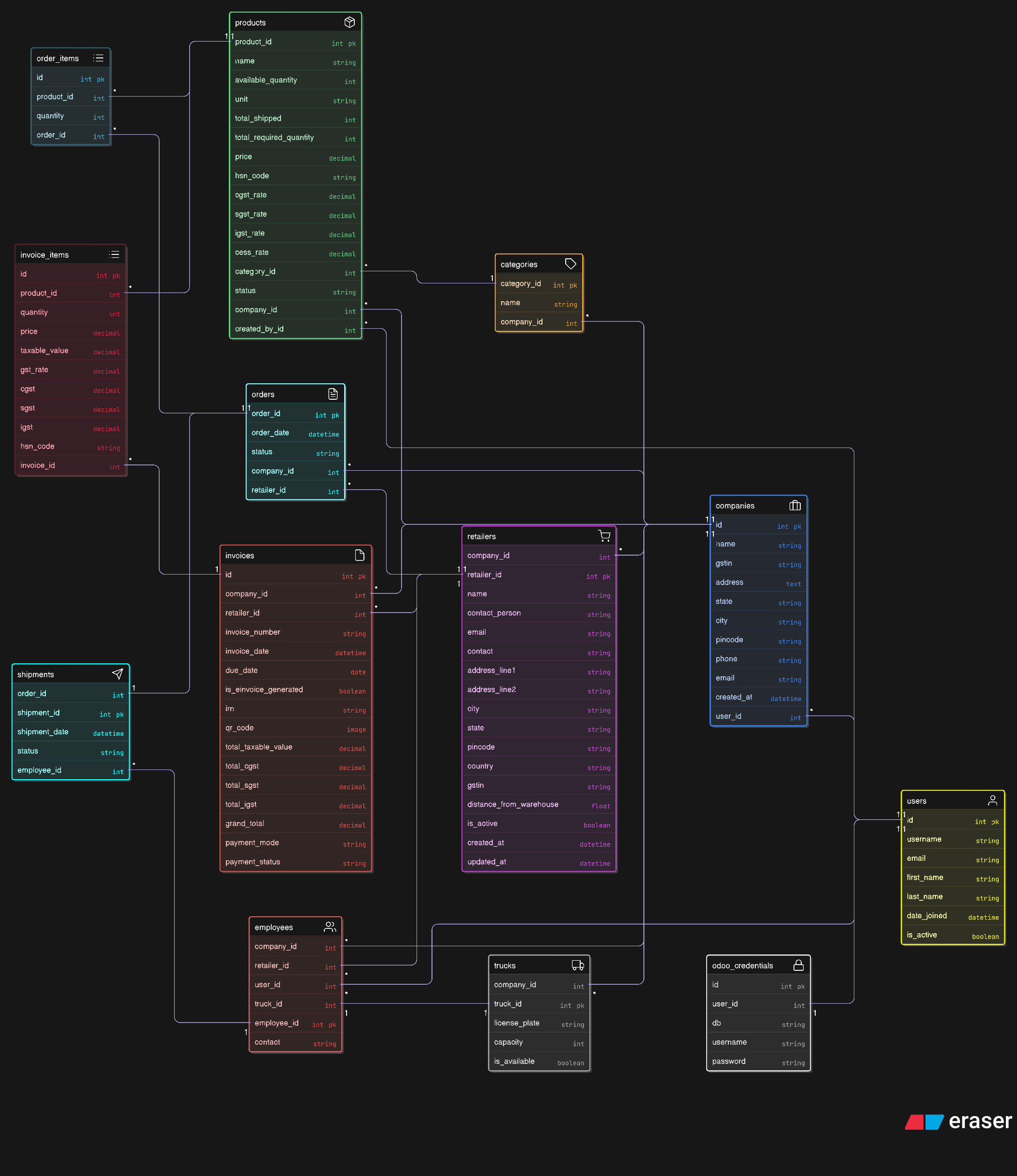 Entity Relationship Diagram (ERD) for the Smart chain ERP platform database schema.